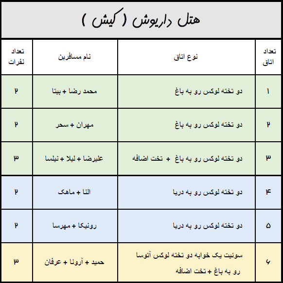 ردیف: اول از صندلی 4 الی 18 ـ تعداد 15 نفر